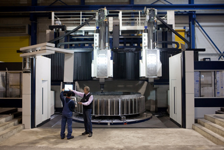 Emsland Metallbau hat eigene probate Lösungen entwickelt für das fachgerechte Handhaben und Transportieren von Bauteilen, wie z.B. WEA-Trägersysteme, die im Fertigungsprozess stetig an Durchmesser, Länge und Masse zunehmen.